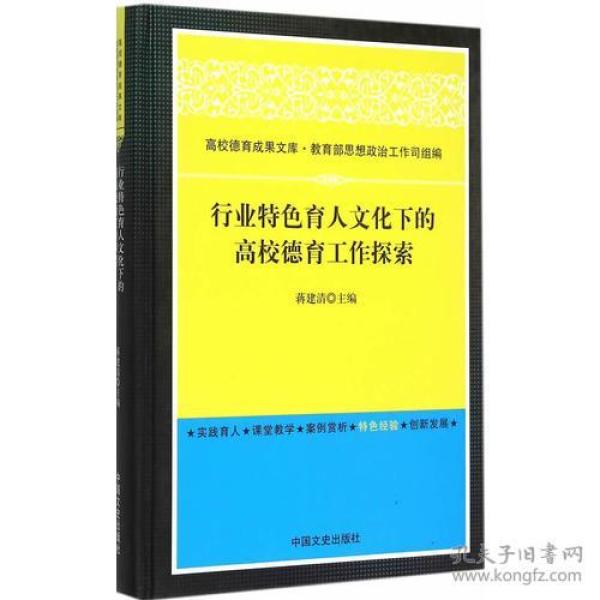 蔣建清主編的《行業特色育人文化下的高校德育工作探索(精)/高校德育成果文庫》是《高校德育成果文庫》入選書目之一,收錄了南京信息工程大學近年來在大學生思想政治教育理念創新與工作實踐等方面的研究成果、調查報告和相關文件資 料,總結了該校在思想政治理論課建設、輔導員隊伍建設、校園文化建設等方面的特色經驗,展示了該校在社會主義核心價值觀培育、社會實踐活動、大學生心理健康教育、資助育人、