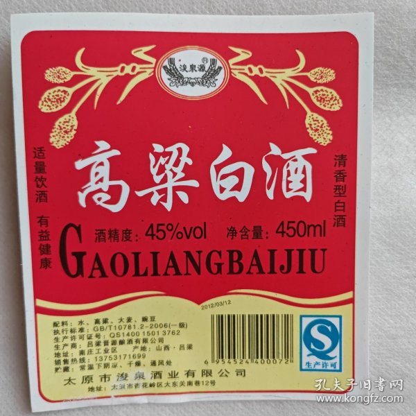 出版社 山(shan)西省(sheng)文水縣春光酒(jiu)廠