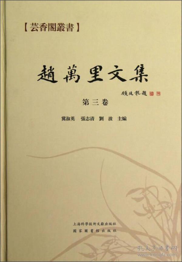 蕓香閣是中國古代官府藏書之所的別稱,古人常把蕓香和書籍放在一起殺蟗魚,“蕓香閣叢書”含有圖書館和古籍整理等意義。《蕓香閣叢書:趙萬里文集(第3卷)》由顧廷龍、趙萬里、潘天禎、冀淑英等四人文集組成,作者均為當代古籍版本目錄學界的宗師和泰斗。,《蕓香閣叢書:趙萬里文集(第3卷)》由國家圖書館、上海圖書館、南京圖書館聯合編纂;國家圖書館出版社和上海科學技術文獻出版社共同推出。