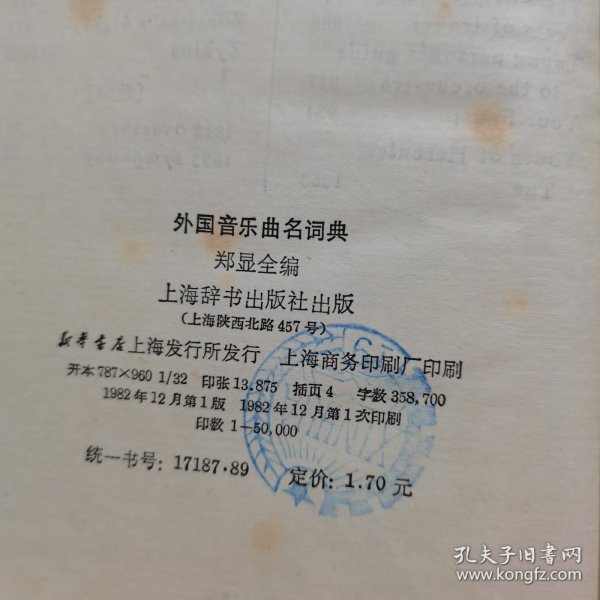 出版社 上海辭書出版社 外國音樂曲名詞典