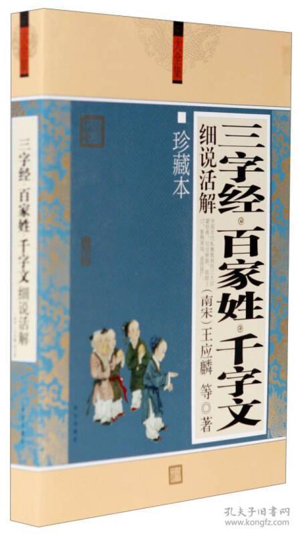 《三字經》、《百家姓》、《千字文》,合稱《三百千》,是我國傳統啟蒙教育的第一書,在古代影響極大、流傳甚廣。明代思想家、文學家呂坤曾說:“初人社學,八歲以下者,先讀《三字經》以習見聞,讀《百家姓》以便日用,讀《千字文》以明義理。”  《三百千》中,《三字經》成書最晚,但是影響最大。作者王應麟字伯厚,號深寧居士,是南宋著名的學者、教育家、政治家。《三字經》文筆自然流暢、樸實無華、深