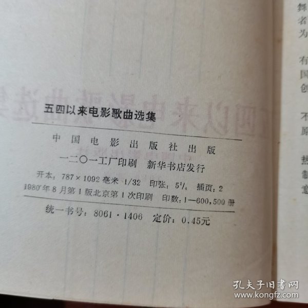 出版社 中國電影出版社 五四以來電影歌曲選集