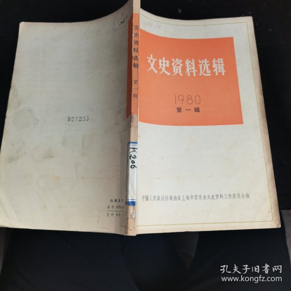 出版社 上海市政協文史資料編輯部