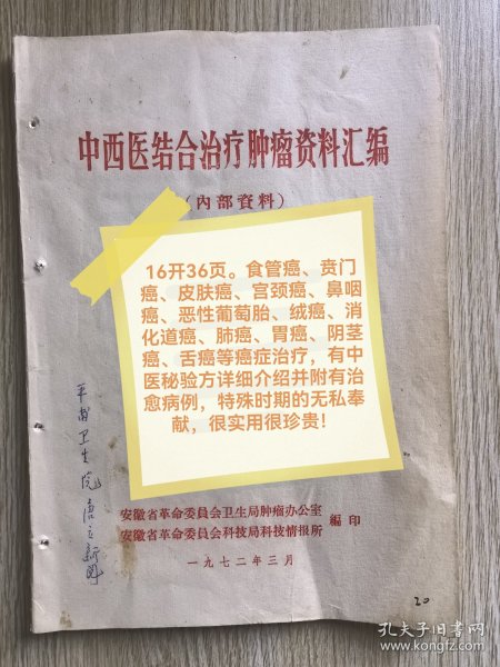 出版社 安徽省革命委員會衛生局腫瘤辦公室