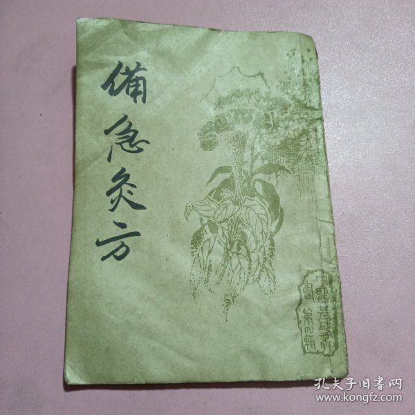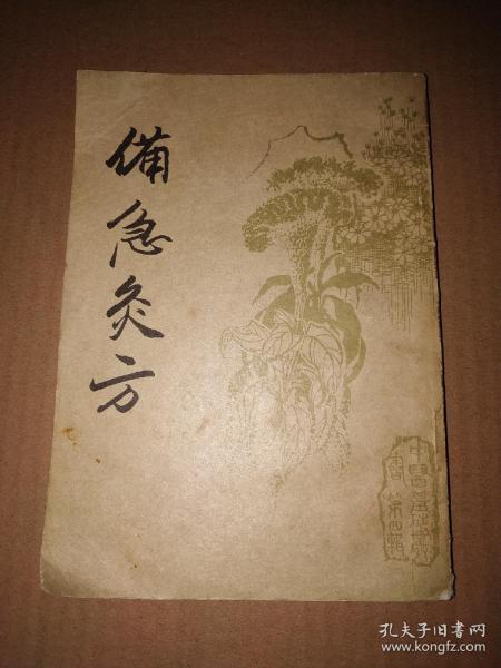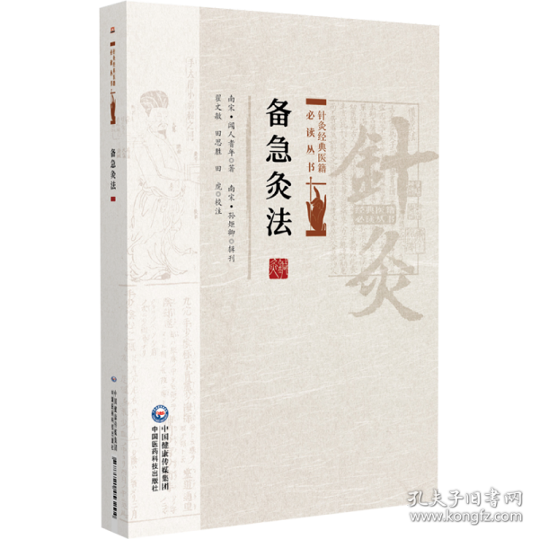 備急灸法為灸法專著,又名備急灸方,1卷。南宋聞人耆年撰于寶慶二年(1226年)。介紹諸發、腸癰、溺水、自繳、蛇咬傷等22種急證灸治方,每方均記出處,并有簡明圖說。原刻本已佚,現存淳祐五年(1245年)孫炬卿復刻本。重刊時附有佚名氏騎竹馬灸法及竹閣經驗備急藥方。前者記述盛行于宋代之騎竹馬取穴灸治癰疽法,該法以此書記載為早且詳;后者集治療頭風、頭痛、便毒、湯火傷等36方,皆供備急之