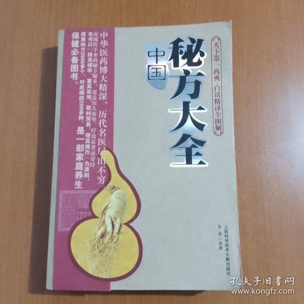 《中國秘方大全》本著“擷取精華,重在實效,操作簡單”的原則,共收集古今名家和民間秘方、秘法約2000首,以科為綱,以病統方,以方為主。全書共分七章,包括內科、外科、婦科、兒科、五官科、皮膚科、美容科。多數方劑下皆含配方、制用法、功效以及來源、注意事項等。既有藥物的內服、外用,又有非藥物的治療;各種中草藥配有圖解,使得全書圖文并茂、版式優美、條目清晰,極便于家庭查閱和中醫藥工作者
