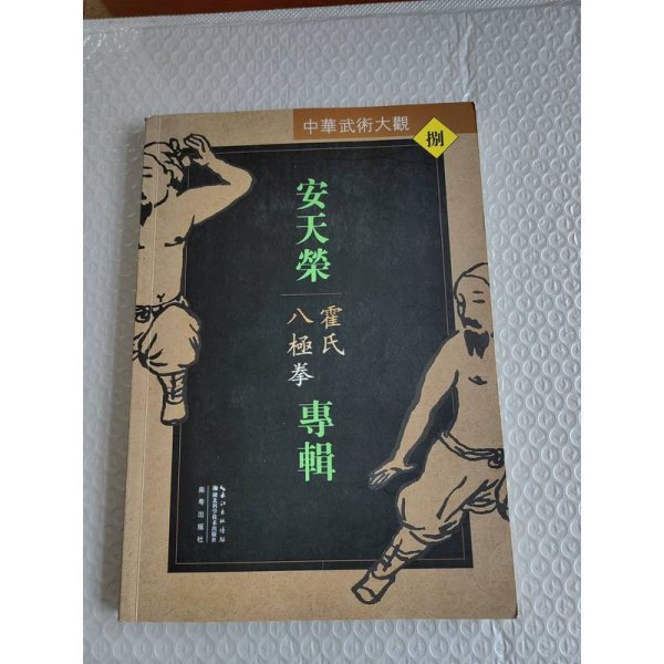 中華武術大觀,1994年一版一印,僅印5千冊,16開本,繁體橫排本;李書文霍殿閣開門八極拳,詳論霍氏八極拳源流、師承沿革及特點功法、與劈掛掌關系,手型步型步法,基本功、小架、大架和對接、新拳譜老拳譜動作圖解,300余幅演練圖片,練法、拳訣、套路,沉墜勁、十字勁、纏絲勁勁法