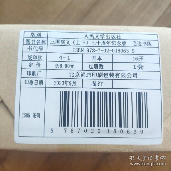毛邊本稀缺,全新未拆封,出廠原裝原箱,京東快遞盒都沒拆!未拆封原樣牛皮紙包裝。【典藏毛邊本】三國演義七十周年紀念版毛邊本(布面精裝全二冊各帶牛皮函套,藏書票一枚)陳全勝精美彩插圖全限量全球僅印600套19年最新權威修訂版