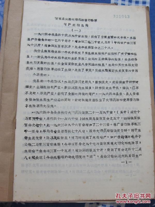 作者 安東前陽公社前陽大隊水田除草實行小包公包薅三遍