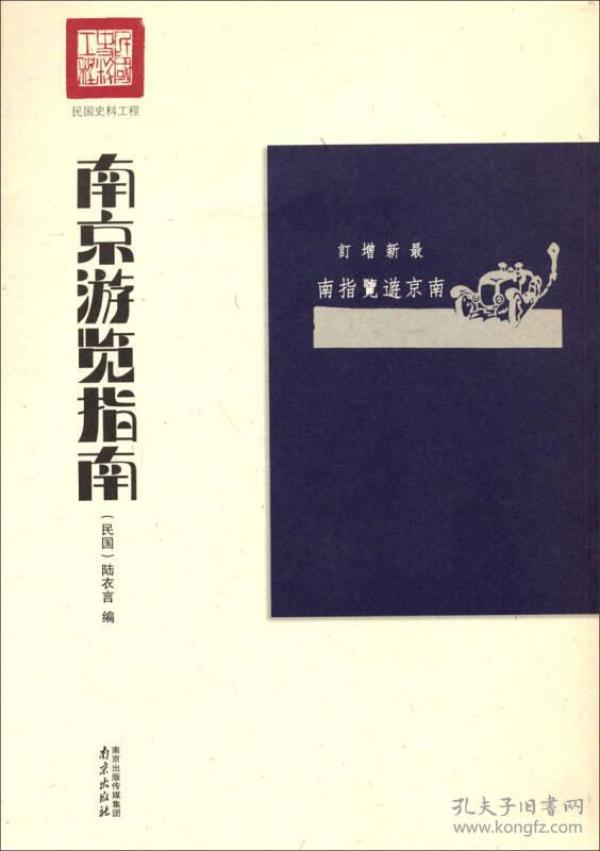 《南京游覽指南(最新增訂民國史料工程)》是民國語言學家陸衣言的一本旅游著作,民國十三年六月由中華書局印刷、發行,民國十五年五月再版。共分十二章,書中介紹南京的概況、各風景區的游覽行程、交通情況、食宿游覽、物產等,還附有筆記空格、旅費收支表、人名錄、書信收發表。書前有銅版圖25幅。是研究民國時期南京的重要資 料,具有較強的可讀性與收藏價值。