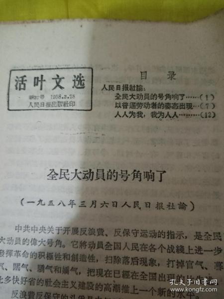 出版社 1958人民日報社論