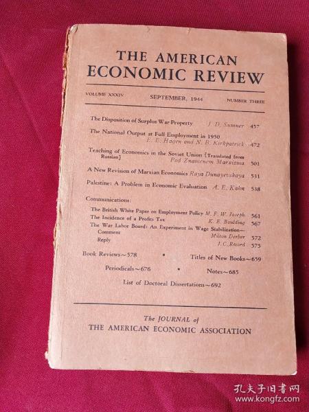 出版社 美國(guo)經(jing)濟評論,1946年(nian)第(di)4號,第(di)1部(bu)分