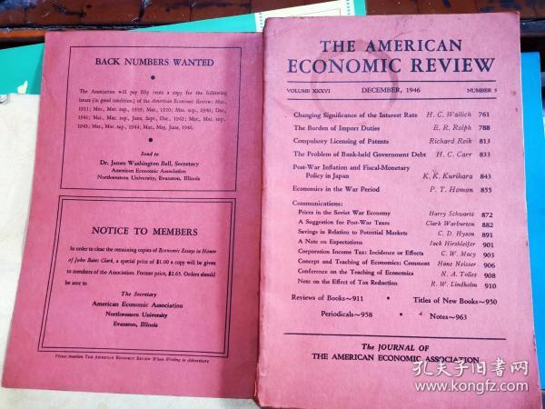 出版社 美(mei)國經濟評論(lun)十二(er)月三十六卷,1946年(nian)5號