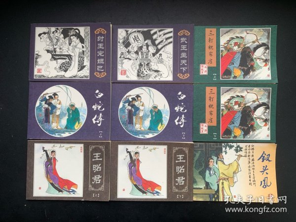 10本 中國古代戲曲故事連環畫小人書老版懷舊現代新印正版 上美64開平裝藍函《白蛇傳+穆桂英+十五貫+玉堂春+釵頭鳳+竇爾敦+四進士+竇娥冤+宇宙峰+樊江關》