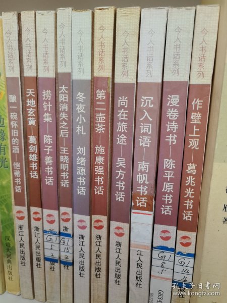 1997年一版一印,全12冊;作壁上觀 葛兆光書話、漫卷詩書 陳平原書話、沉入詞語 南帆書話、尚在旅途 吳方書話、第二壺茶 施康強書話、終朝采綠 揚之水書話、釀一碗懷舊的酒 愷蒂書話、冬夜小札 劉緒源書話、太陽消失之后 王曉明書話、撈針集 陳子善書話、被遺忘與被批評的 朱學勤書話、天地玄黃 葛劍雄書話