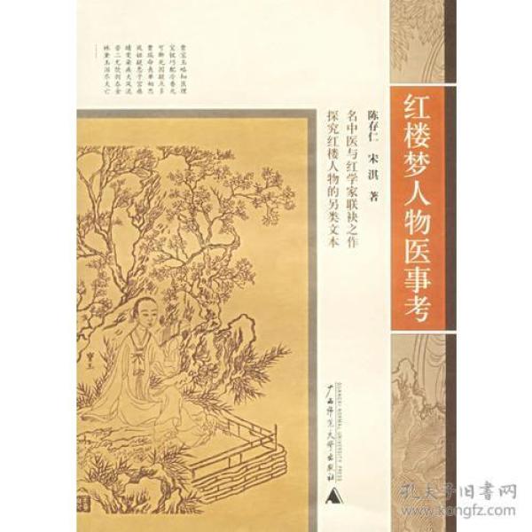 國際在線報道:由著名中醫師陳存仁和紅學家宋淇聯袂之作《紅樓夢人物醫事考》近日出版,本書從中醫學的角度來談紅樓人物,選取的人物都是大家耳熟能詳的,如賈寶玉、林黛云、王熙鳳、薛寶釵、賈瑞、晴雯等。  作者中醫師陳存說:我從做醫生的角度來看,對他書中寫出許多男男女女的病情,從發病起到性命結束為,要是不懂得一點醫理,哪里會寫得如此切合病情,而且有幾個人連病況都描寫詳盡,特別是