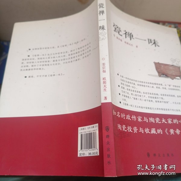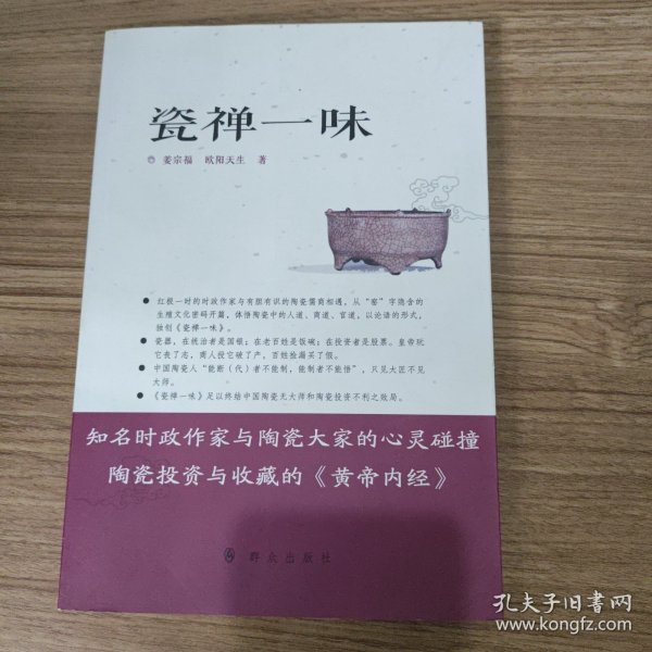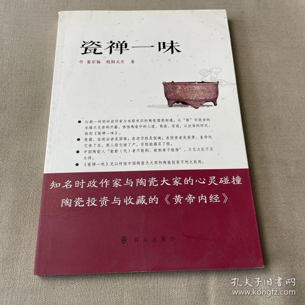 由禪體悟中國瓷之道,是姜宗福、歐陽天生編寫的這本《瓷禪一味》的唯一追求。《瓷禪一味》由文化和哲學出發,探討了陶瓷的命運與國家的命運、燒瓷的火候與做人的火候、瓷器的器度與做人的氣度、好好做人與好好做瓷、藏瓷與治國以及瓷道與官道等文化熱點話題,填補了中國陶瓷文化空白,不僅有益于藏家,亦有益于民眾健康信仰的確立。藏瓷,不可不讀《瓷禪一味》。