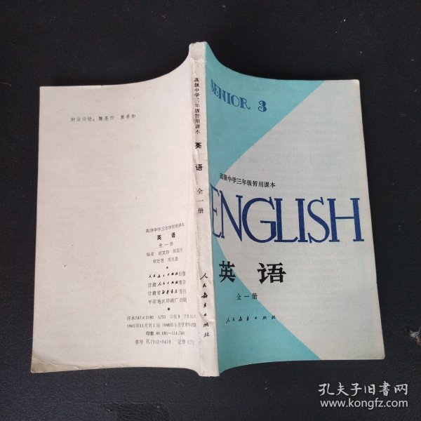 出版社 : 人民教育出版社 高級中學三年級暫用課本 全一冊