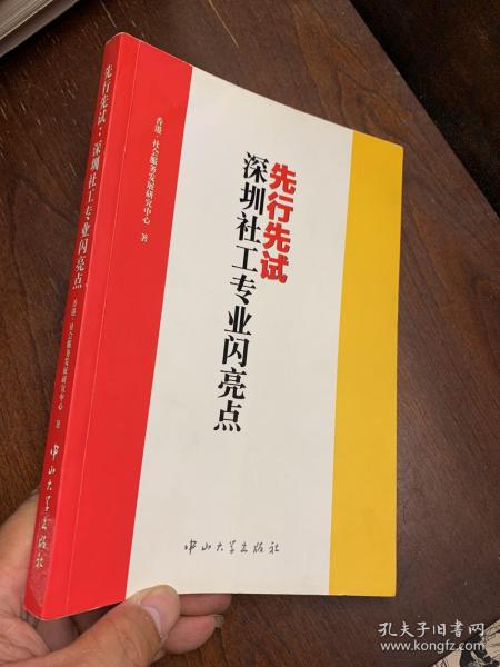 香港社會服務發展研究中心出版《先行先試:深圳社工專業閃亮點》一書,目的是希望集結香港督導計劃的寶貴經驗,透過知識經驗的整合和記錄,與其他發展社工人才隊伍的省市分享。,《《先行先試:深圳社工專業閃亮點》》邀請了11位深圳社工,20位香港督導和學者,分享他們在社區、教育、家庭、復康、司法以及信訪等不同服務領域的案例及發展經驗,記載及總結內地發展社工服務的成效及未來方向。