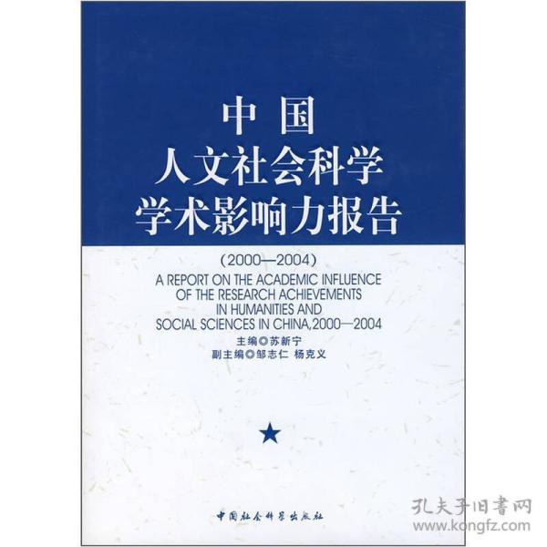 《中國人文社會科學學術影響力報告(2000-2004)》一覽中國人文社會科學研究之概貌,縱觀我國人文社會科學研究之脈絡,展現人文社會科學研究之源泉,反映人文社會科學期刊之影響,洞察人文社會科學研究熱點和趨勢。這是一部由人文社會科學各學科專家教授,借助《中文社會科學引文索引》(CSSCI)的統計數據,對21個學科的學術成果、學者、機構、地區進行多角度分析評價的論著。《中國人文社會