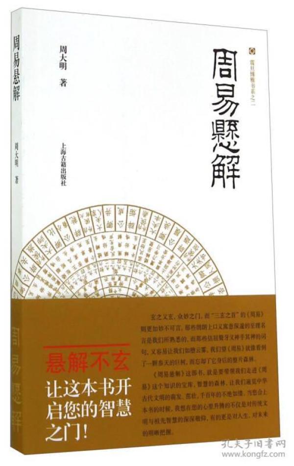 《震旦博雅書系之二:周易懸解》是周大明先生最新的研究成果。《震旦博雅書系之二:周易懸解》與以往學界對《周易》的研究有很大不同,作者綜合運用了考古學、文獻學、天文學等多方面的材料,對《周易》的成書、釋義以及流變作了深入解讀。學術功力深厚,見解獨到。而且作者將《周易》的研究放入到中西方文化對比的高度上,不僅廓清了圍繞在《周易》研究中的迷信疑云,更升華到了民族精神的高度。